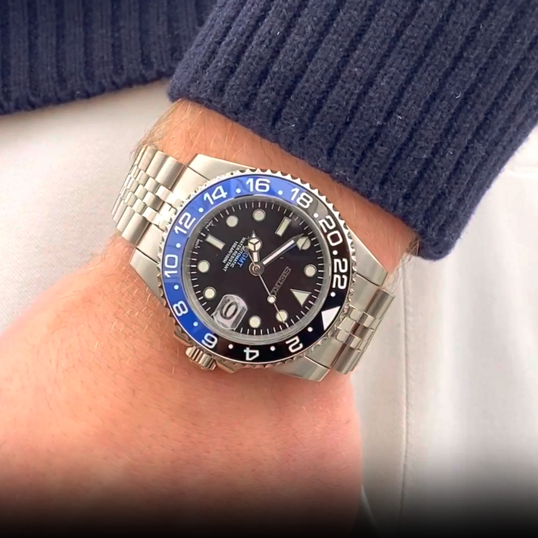 Inspired by the iconic GMT design, and featuring the prestigious Seiko NH34 automatic movement, we present the Seiko Mod GMT. A 40 mm high-end quality watch combining the perfect alliance between excellence and accessibility.
