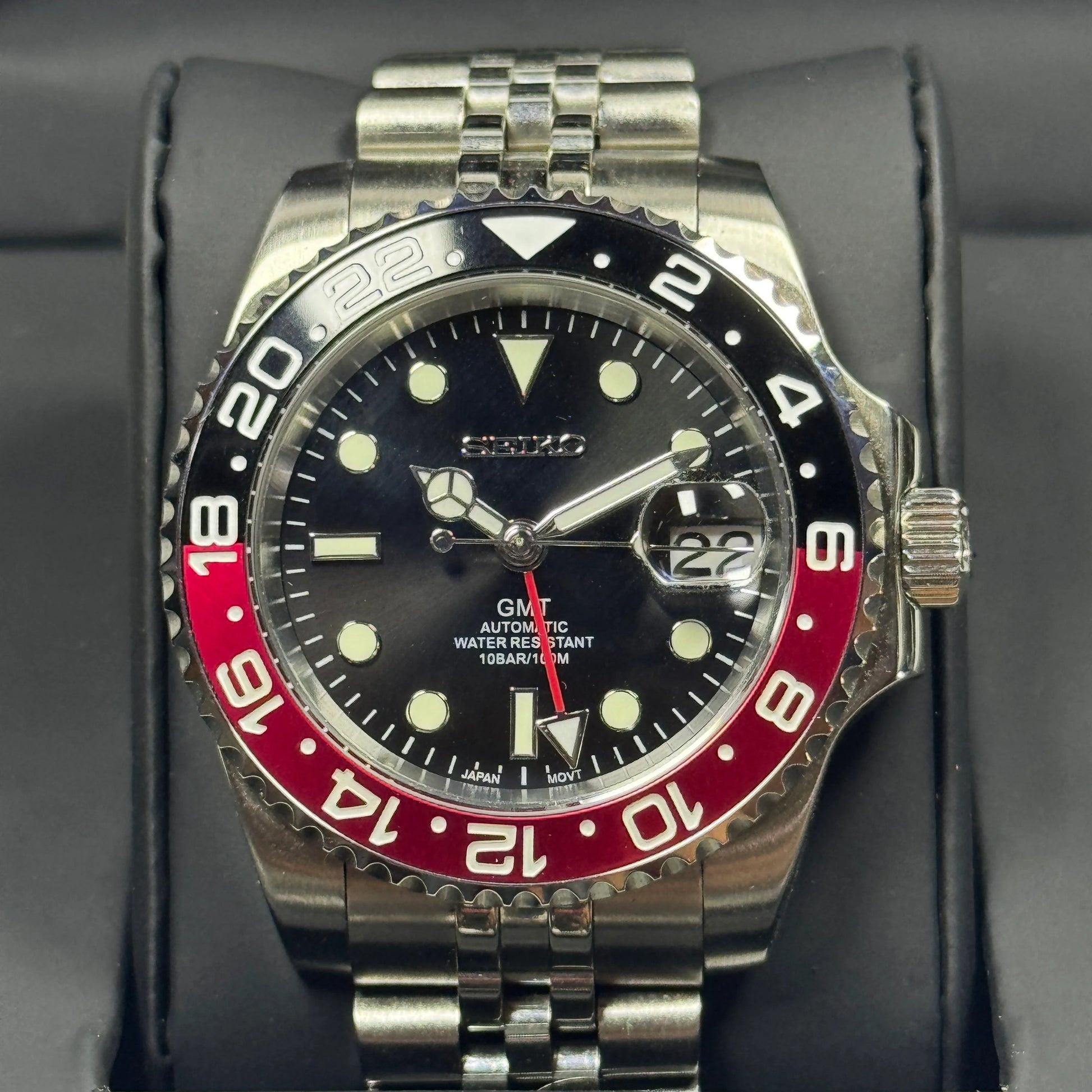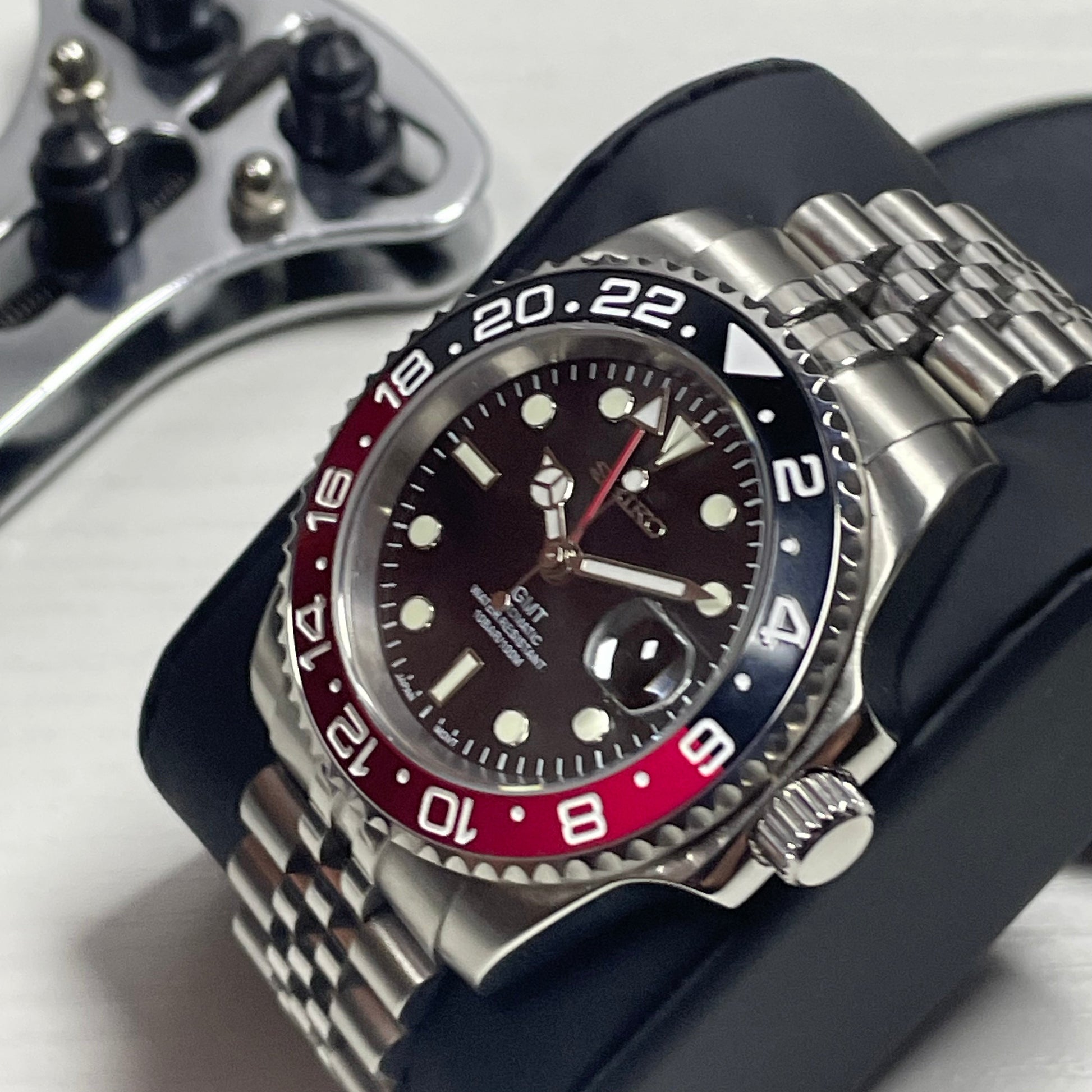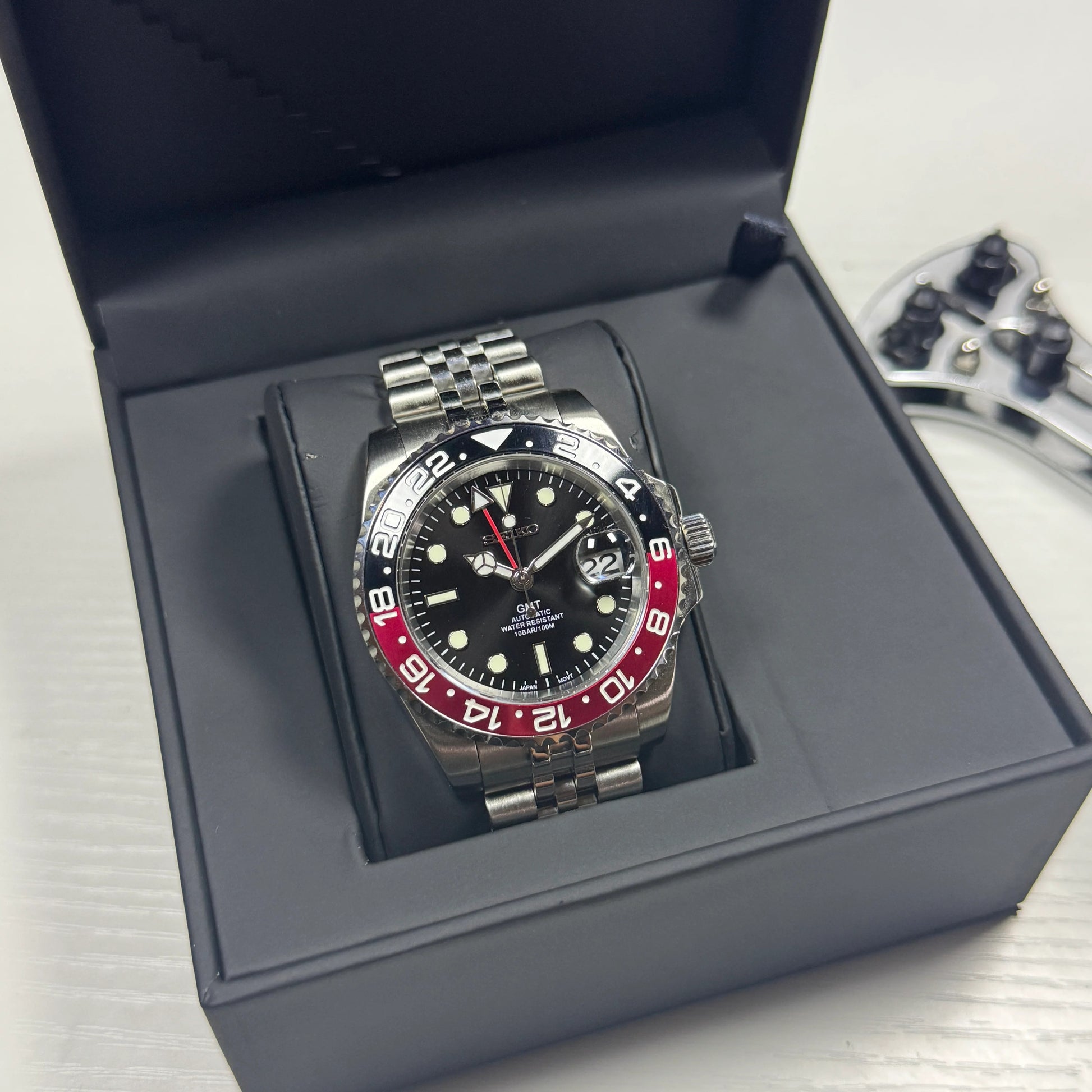 Inspired by the iconic GMT design, and featuring the prestigious Seiko NH34 automatic movement, we present the Seiko Mod GMT. A 40 mm high-end quality watch combining the perfect alliance between excellence and accessibility.