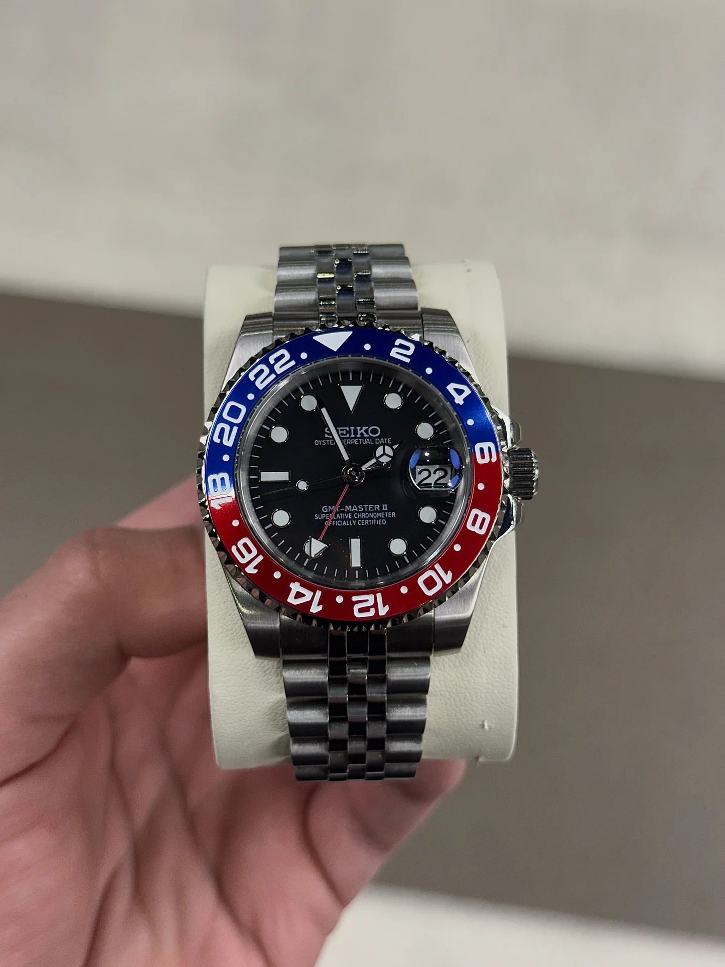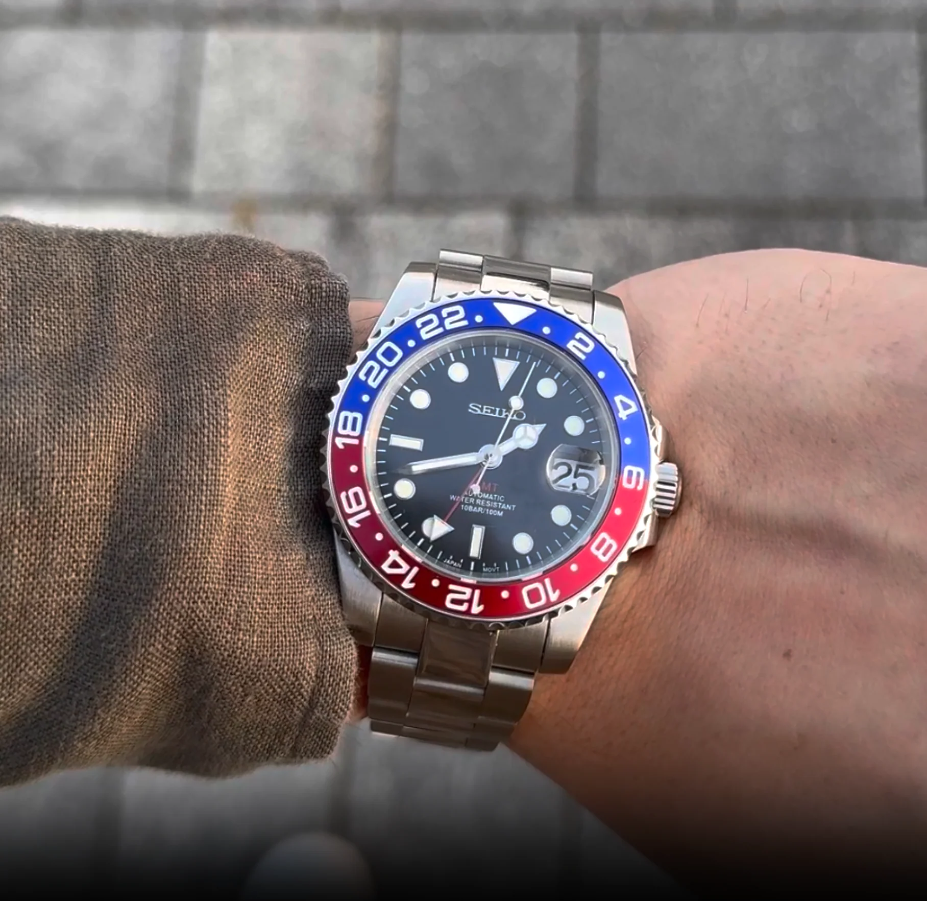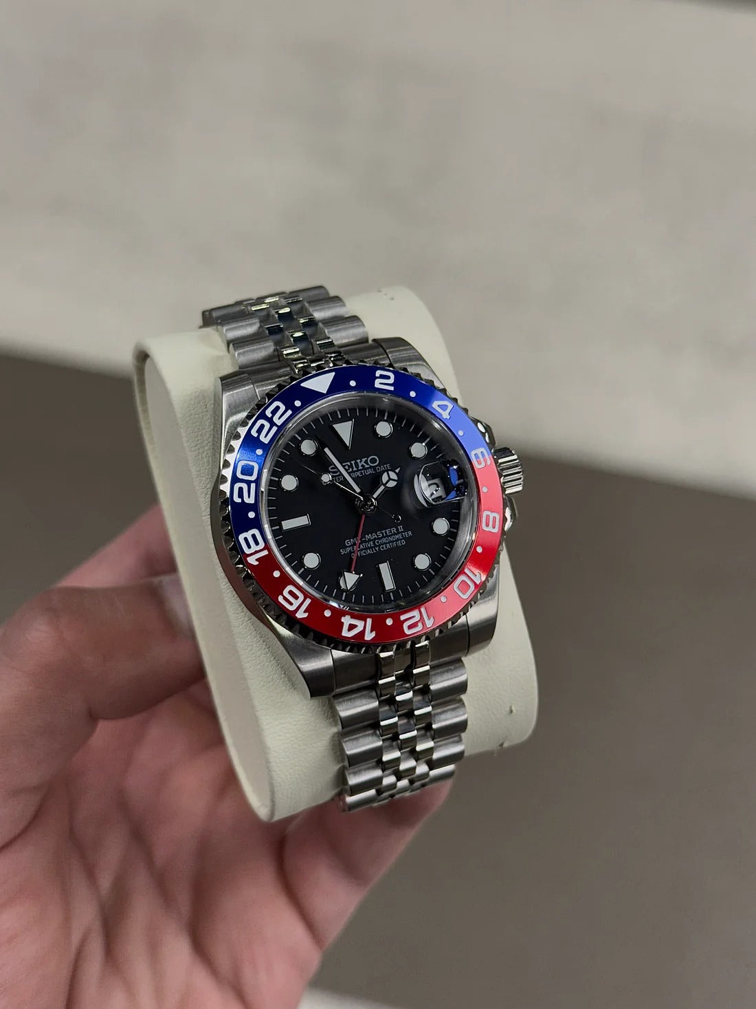 Inspired by the iconic GMT design, and featuring the prestigious Seiko NH34 automatic movement, we present the Seiko Mod GMT. A 40 mm high-end quality watch combining the perfect alliance between excellence and accessibility.