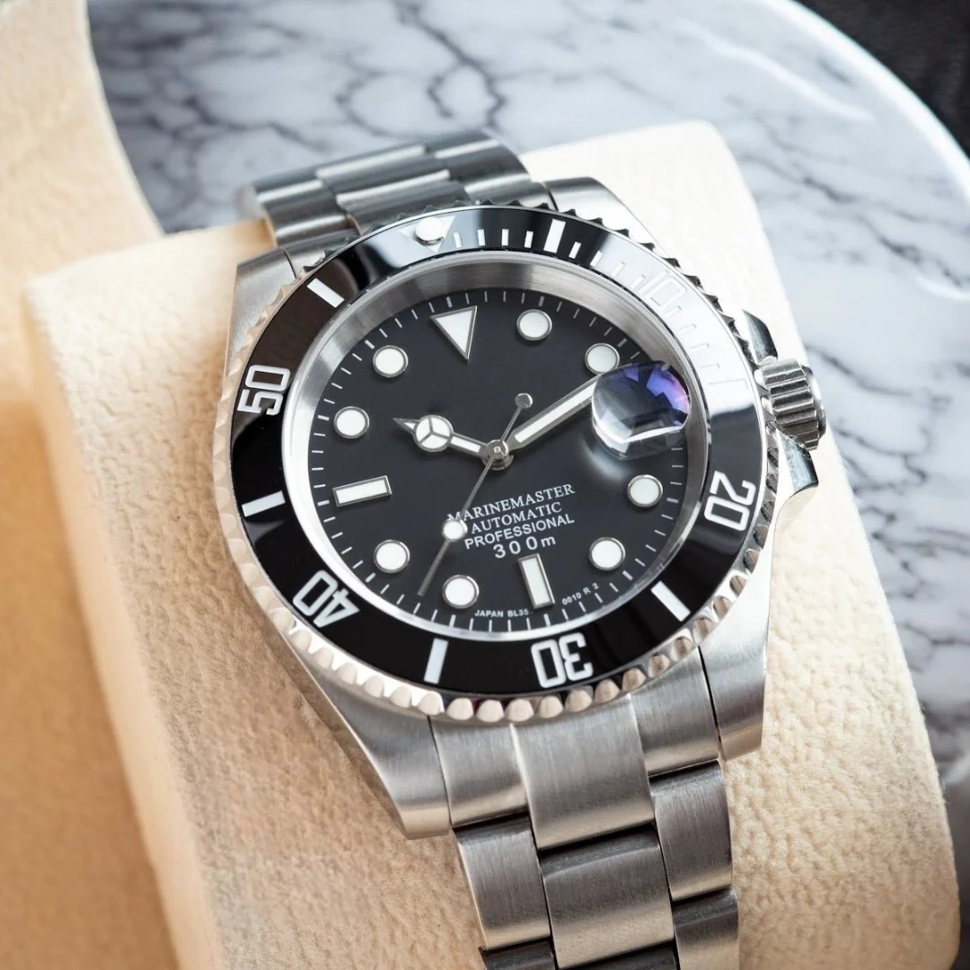 Inspired by the iconic Submariner design, and featuring the prestigious Seiko NH35 automatic movement, we present the Seiko Mod Submariner. A 40 mm high-end quality watch combining the perfect alliance between excellence and accessibility.