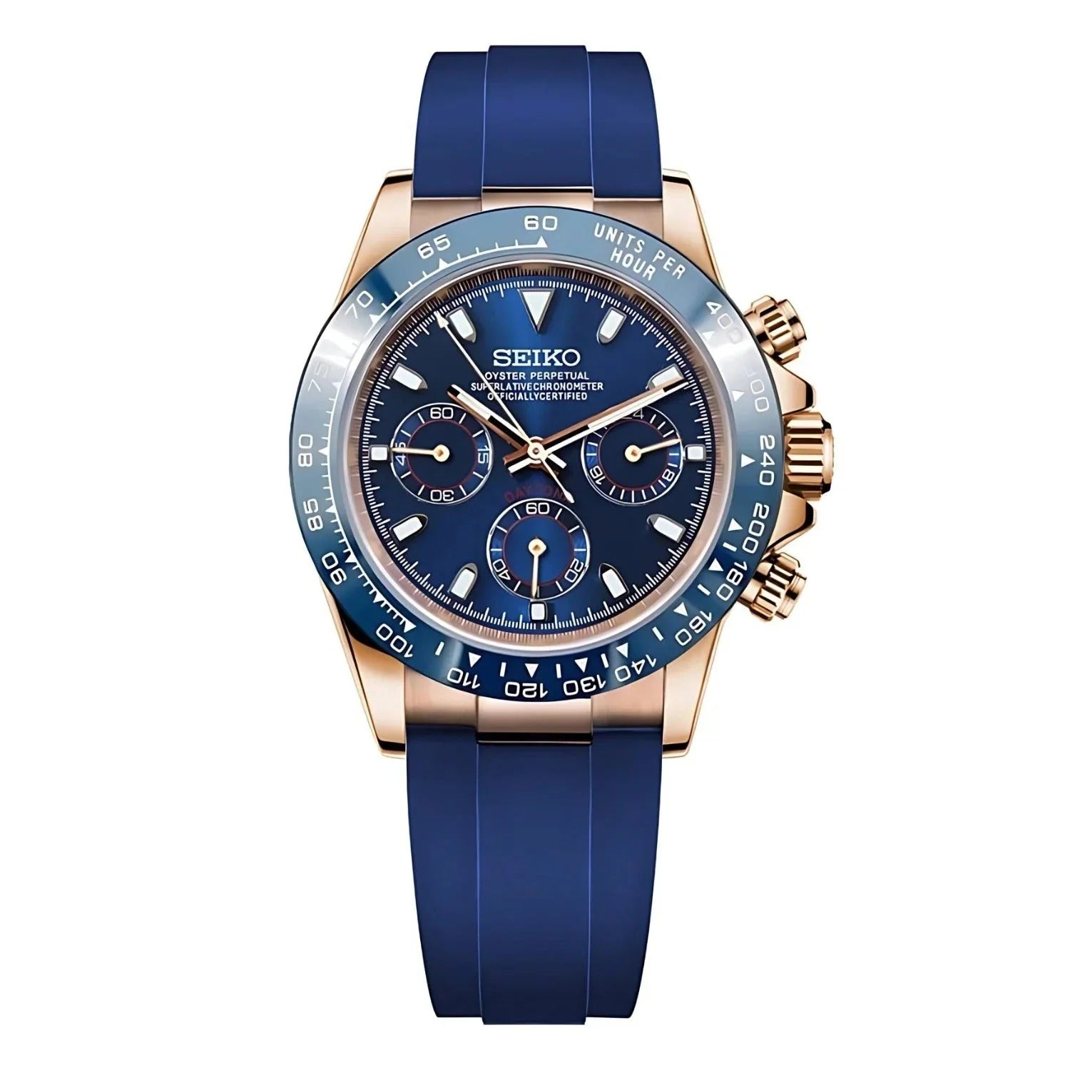 Inspired by the iconic Daytona design, and featuring the prestigious Seiko VK63 hybrid movement, we present the Seiko Mod Daytona. A 40 mm high-end quality watch combining the perfect alliance between excellence and accessibility.